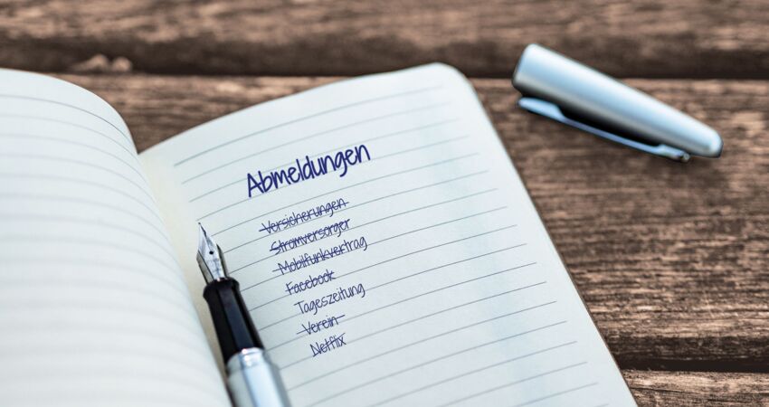Die wichtigsten Abmeldungen bei den Ämtern nehmen wir natürlich für Sie vor. Sind in den kommenden Monaten weitere Abmeldungen für bisher unbekannte Verträge, Mitgliedschaften oder Nutzerkonten des Verstorbenen notwendig, regeln Sie das schnell und einfach mit dem Abmelde-Assistenten in unserem Kunden-Center!